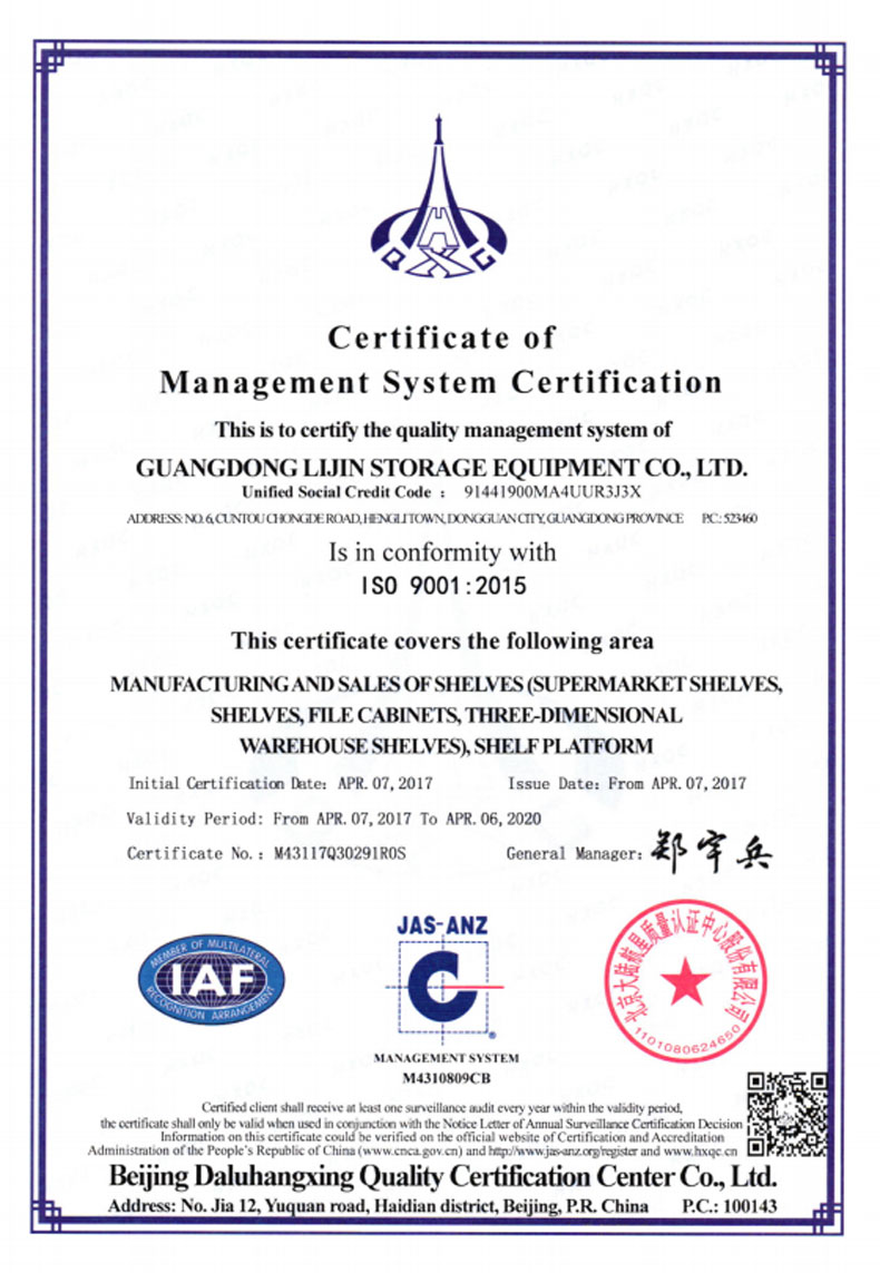 ?2016年5月    更名為廣東力進倉儲設(shè)備有限規(guī)公司,搬遷至東莞市橫瀝鎮(zhèn)村頭工業(yè)區(qū),占地面積12800平方米。